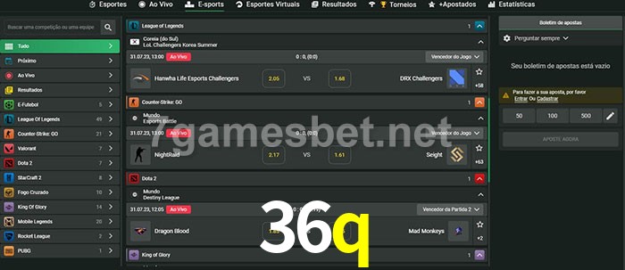 A aposta 36q oferece aos jogadores a experiência mais conveniente de apostas em eSports!